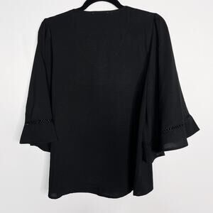 New Gilli Large Black 3/4 Bell Sleeve VNeck Blouse Top Ruffle Inset Trim Detail