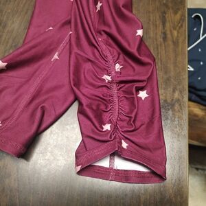New with tag gilly hicks go recharge leggings size women's M. They are a maroon color with stars cinch at the bottom of the legs rise 9 inches inseam 27 inches. Moisture wicking pockets.