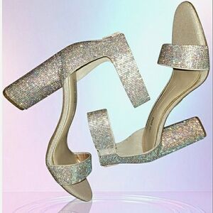 Ginni Bini Absolutely Stunning New With Tags Women's 4" Block Heel Ankle Strap Crystal Rinestone Glitz Bling Sparkling Open Toe Formal Events Prom Graduation Drag Homecoming Pagent Sexy Wedding Guest Bridesmaid Mother Of The Bride Events Cocktail Spring Break Summer Beach Vacation Cruise Resort Packable Rainbow Iridescent Colidscop Lightweight Comfortable Slip-On Multicolored Dance