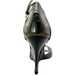 New Giorgio Armani Women 9.5 High Heel Shoes Gray Patent Leather Wedge Sandals