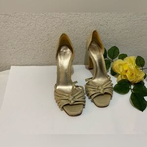 New and 100% Authentic Almond Peep-Toe Wedge Dress Sandals by Giorgio Armani US 9.5. Made in Italy
