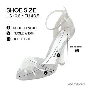 - Adjustable buckle closure on the ankle strap. Flower adornment
