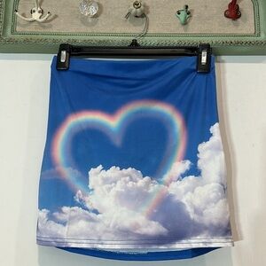 New Girl Order Rainbow heart in the clouds stretchy mini skirt size 10 women’s