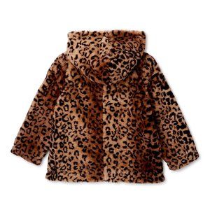 New Girls' Faux Fur Leopard Print Hooded Zip-Up Coat. Sizes 4, 5/6.