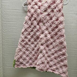 New Girls Pink Applique 3D Flower Weave Chenille Creations Dress Pink Green 2T
