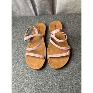 New Girls Steve Madden Jplum Pink Faux Leather Rhinestone Sandals Size 4 M