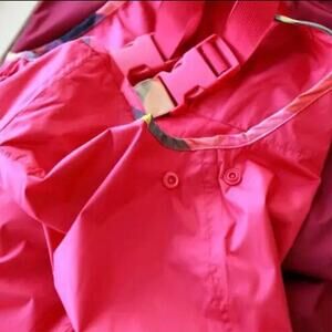 Top rated waterproof, warmly lined rain and outdoor play overalls for girls in hot pink. New with tags. Size 128 cm