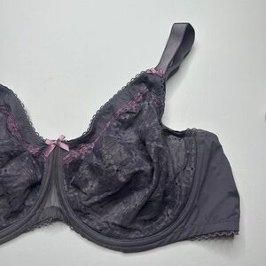 New without tags Glamorise Grey floral Lace Full Coverage Unlined Bra pink detail size 48C