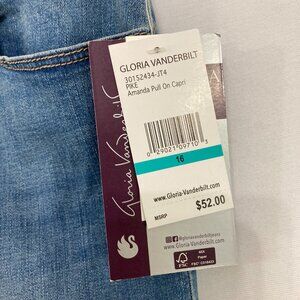 New Gloria Vanderbilt size 16 Blue Medium Wash Stretch Pull-on Capri Jeans
