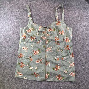 New Glory Tank Top Women's 2X Green Floral Zippered padded Bustier Top