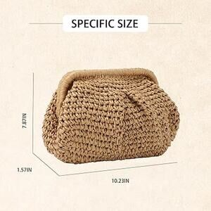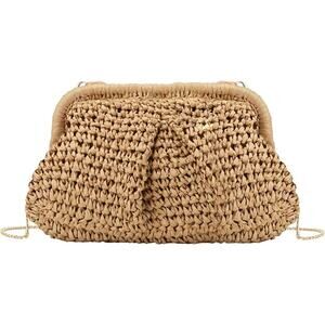 New Goktow Womens Woven Straw Dumpling Clutch Bag Purse w Detachable Chain