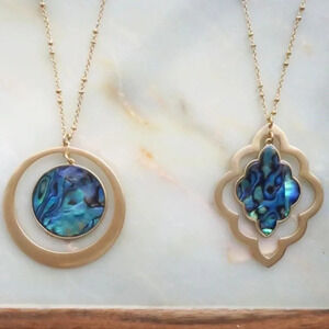 New Gold Abalone Shell Medallion Pendant Boho Necklace