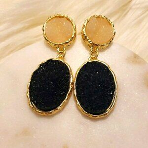 Earrings with glass simulated quartz design. Earrings are lightweight.