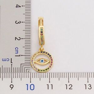 New Gold Evil Eye Hoop Dangle Earrings With Accent Stones, 18K gold plated
