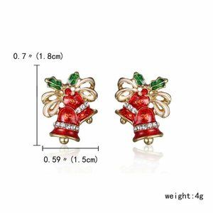 New Gold Red Christmas Bells Diamond Crystal Stud Earrings Holiday Festive Gift
