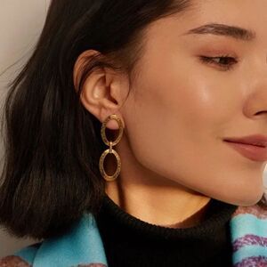 New Gold Oval Hoop Dangle Drop Earrings