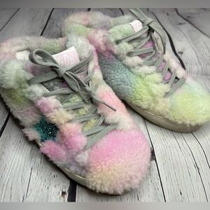 New Golden Goose Sabot Shearling Slip On Sneakers in Aquamarine/Pastel Size 36