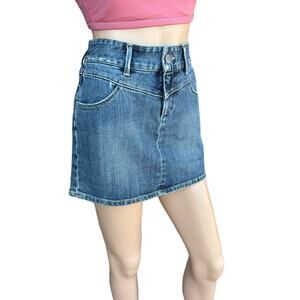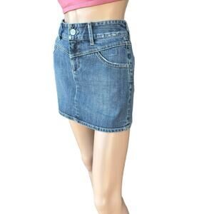 New Goldsign Women's Blue Medium Wash Distressed Jean Denim Mini Skirt Size 27