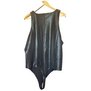 New Good American Black Better Than Leather High-Neck Thong Bodysuit Size 7 4XL