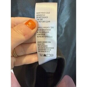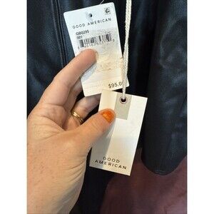 New with tags NWT Good American Better than Leather Black Bodysuit, size 7, equivalent 4XL. Thong style, button closure. Polyurethane; hand wash, line dry.