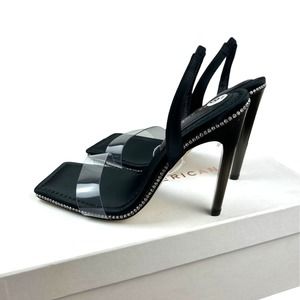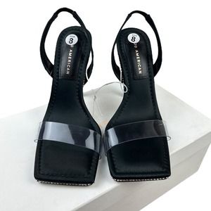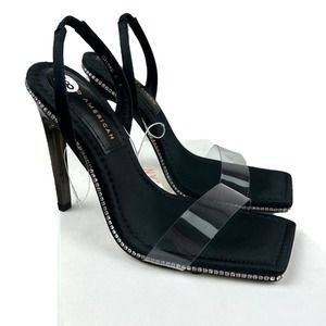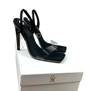 ~ Good American Crystal Crush Lucite Heeled Sandals