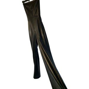 New Good American Faux Buttery Leather Wide Leg Halter Jumpsuit Size Small RN10
