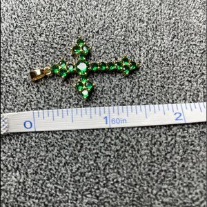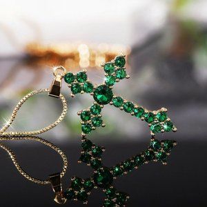 New Gorgeous 18K Gold Plated Silver Emerald Cross Necklace