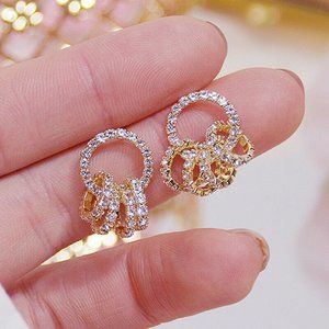 New Gorgeous 18k Gold 925 Silver Diamond Earrings