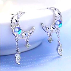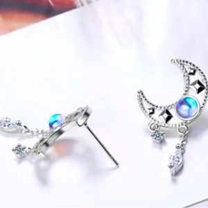 New!! Gorgeous 925 Silver Blue 🌙 Moon🌙 CZ Earrings!