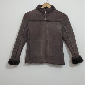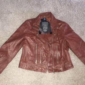 In perfect condition. Like new. 100% leather in a gorgeous tan color. Cute stitching detail
