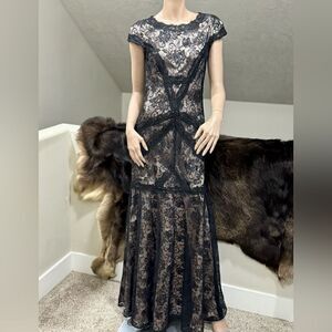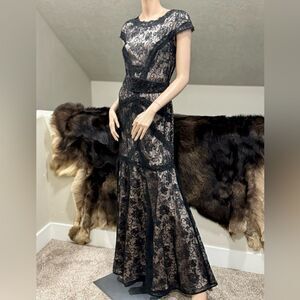 New Gorgeous Black Floral Lace Evening Dress Includes Removable Beads Belt