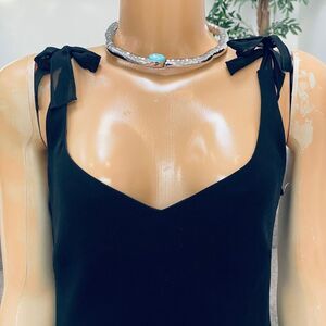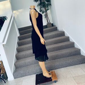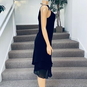 Evan Picone Black Bow Straps Flowy Layererd Cocktail Party MIDI Dress