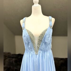 New Gorgeous Light Blue Beaded Chiffon Gown With Shawl