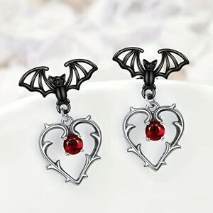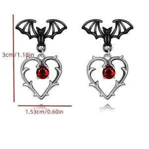 New! Gothic Bat Heart Dangle Earrings Jewelry Horror!