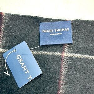 New Grant Thomas Wool Scarf Black Windowpane Men’s NWT