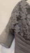 This elegant chiffon gray evening dress features a delicate floral appliqué bodice and a flowing skirt, perfect for special occasions. The sophisticated design offers a timeless look. Chest area is padded so no need for a bra. Dress is new without tags.