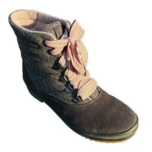 New Gray Wool Blend Keds Hightop Lace Ankle Boots Pink Inside Women’s Size 9.5