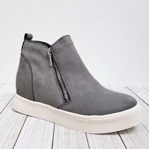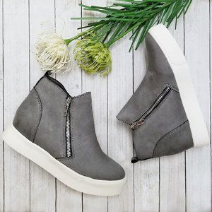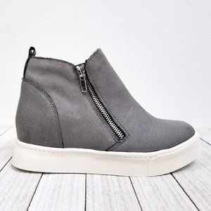 New Gray Zipper Hidden Wedge High Top Sneakers