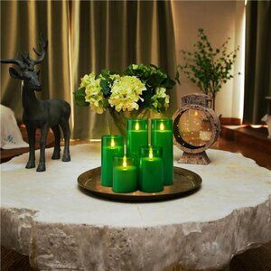 New Green Flickering Flameless Candles, Battery Operated Acrylic LED