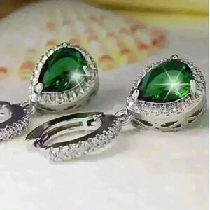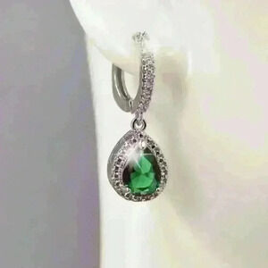 Green Teardrop Hoop Earrings: Luxurious Silver-Tone Hoops with Sparkling Crystals and Teardrop-Shaped Green Gemstones. Elegant and Glamorous Design.
