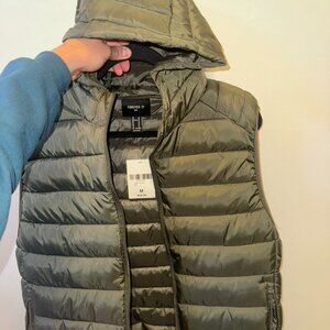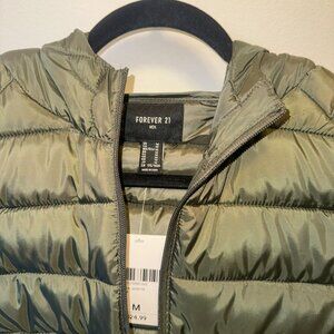 Light weight puffer vest. Army Green. Great layering piece and very light. Size says Medium but I'd look at it as a Small/Medium.