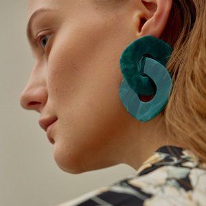 The Overlapping circle Earrings, a pair of green tortoise drop Large thick chunky hoop Layered circle Chain drop Dangle earrings