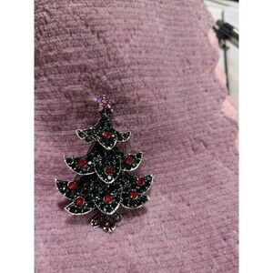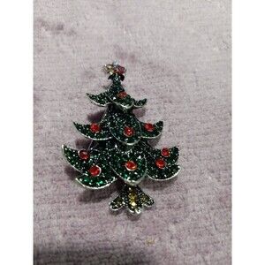 New green and red with crystal Christmas Tree Brooch. 2ins Tall, 1.5ins wide. Brooch in excellent condition.
