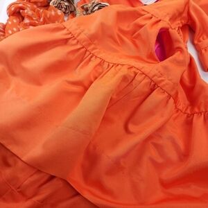 Vibrant orange dress with ruffle details. Perfect for any occasion.