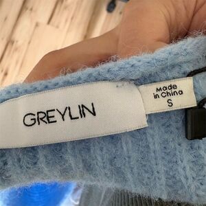 This Greylin pullover sweater is designed for women and comes in a size small. It features a V-neckline and long sleeves, crafted from knit material for a comfortable fit. The solid blue color and regular fit make it suitable for casual occasions, especially during the fall season. The sweater is new with tags.