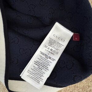 New Gucci 2025 GG Logo Monogram Fine Cotton Jacquard Top in Navy L