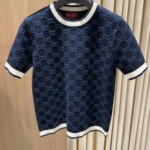 New Gucci 2025 GG Logo Monogram Fine Cotton Jacquard Top in Navy S