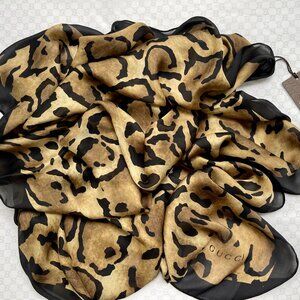 New Gucci Animal Print Stole Silk Satin Scarf with Gucci Box