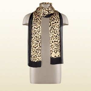 New Gucci Animal Print Stole Silk Satin Scarf with Gucci Box