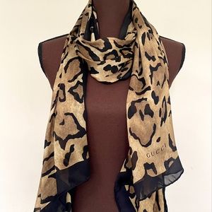 Authentic Gucci Leopard Print Silk Satin Stole